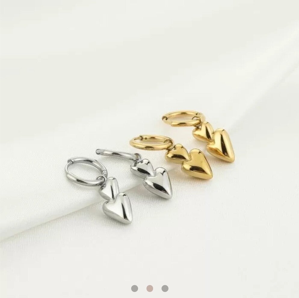 Leuke oorbellen met dubbel hartje, verkrijgbaar in zilver