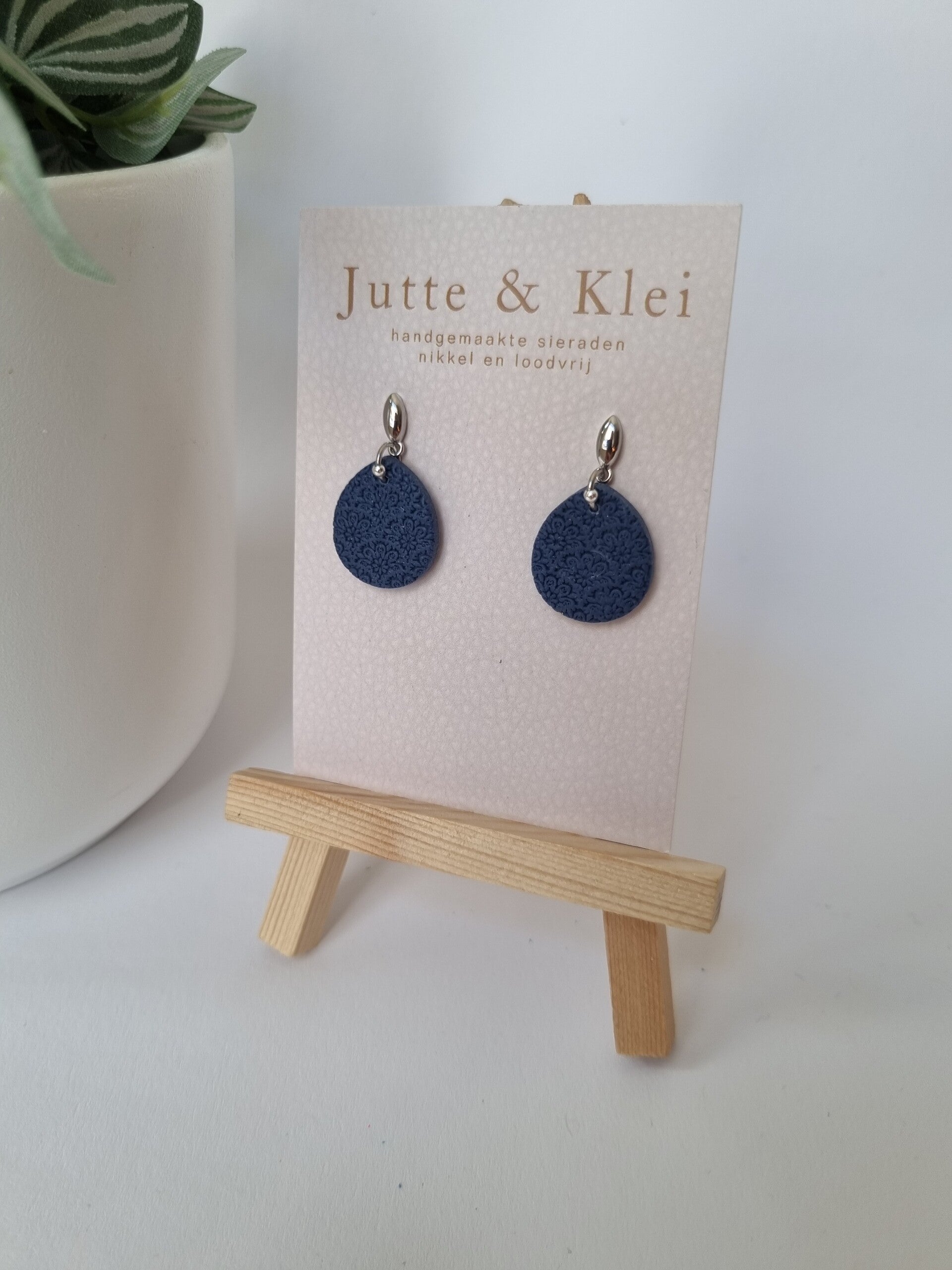 Donkerblauw bloemafdruk